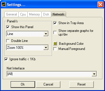 Version 3.8: • Detects and enables Windows performance counters if disabled • "Pile" or "Line" graphs • Ability to choose the network interface • Lighter than before